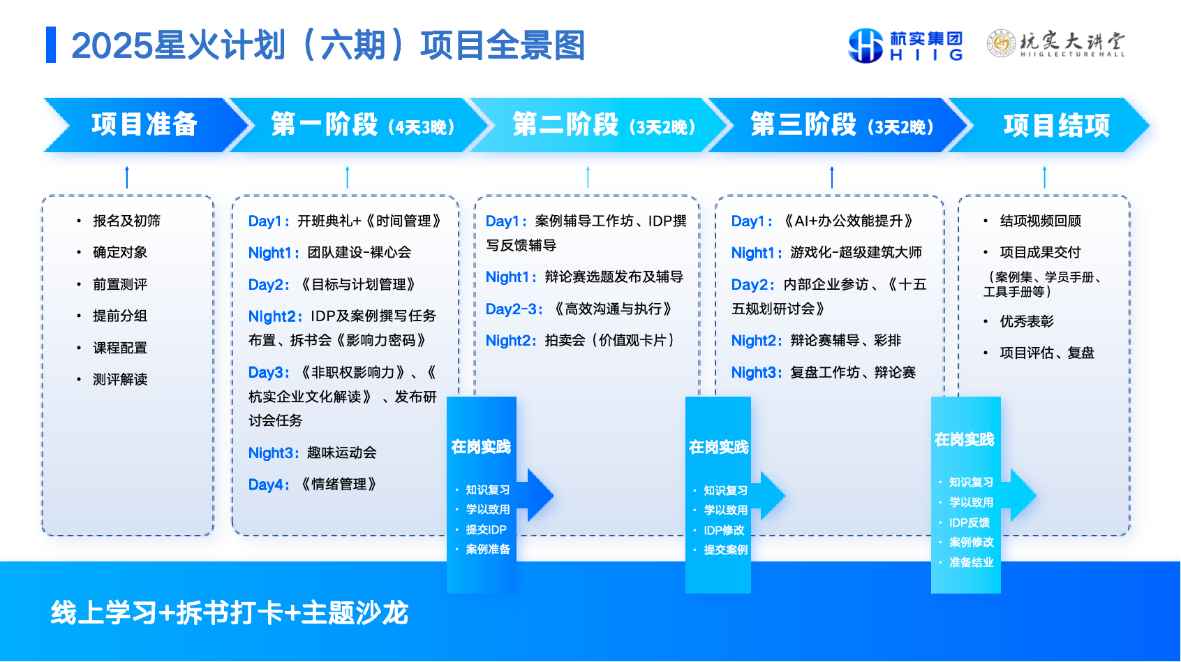 作为集团人才梯队建设的核心组成部分,“星火计划” 始终以年轻新锐干部为培养对象,精准聚焦基层干部能力短板与成长需求。项目紧扣“管理自我、管理他人、管理业务”三大核心模块,以 “训战结合”为核心路径,推动学员实现从“知识输入”到“能力转化”,再到“行为落地”与“绩效提升”的深层次跨越。
